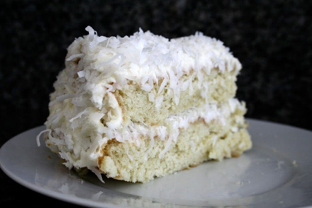My first recipe ever! This one comes to you from my mom in Boston. She came across it years ago and had yet to make it until this weekend. The cake is moist and dense, and the cream cheese frosting melds perfectly with the nuttiness of the coconut. Pour a tall glass of milk, throw on a faux-fur coat, and savour the experience that is this wonderful creation!