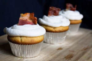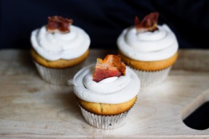 So today I achieved culinary excellence. I put that delicious bacon into a cupcake and not only did it come out well, but I want to say it’s the best recipe I’ve ever made up.