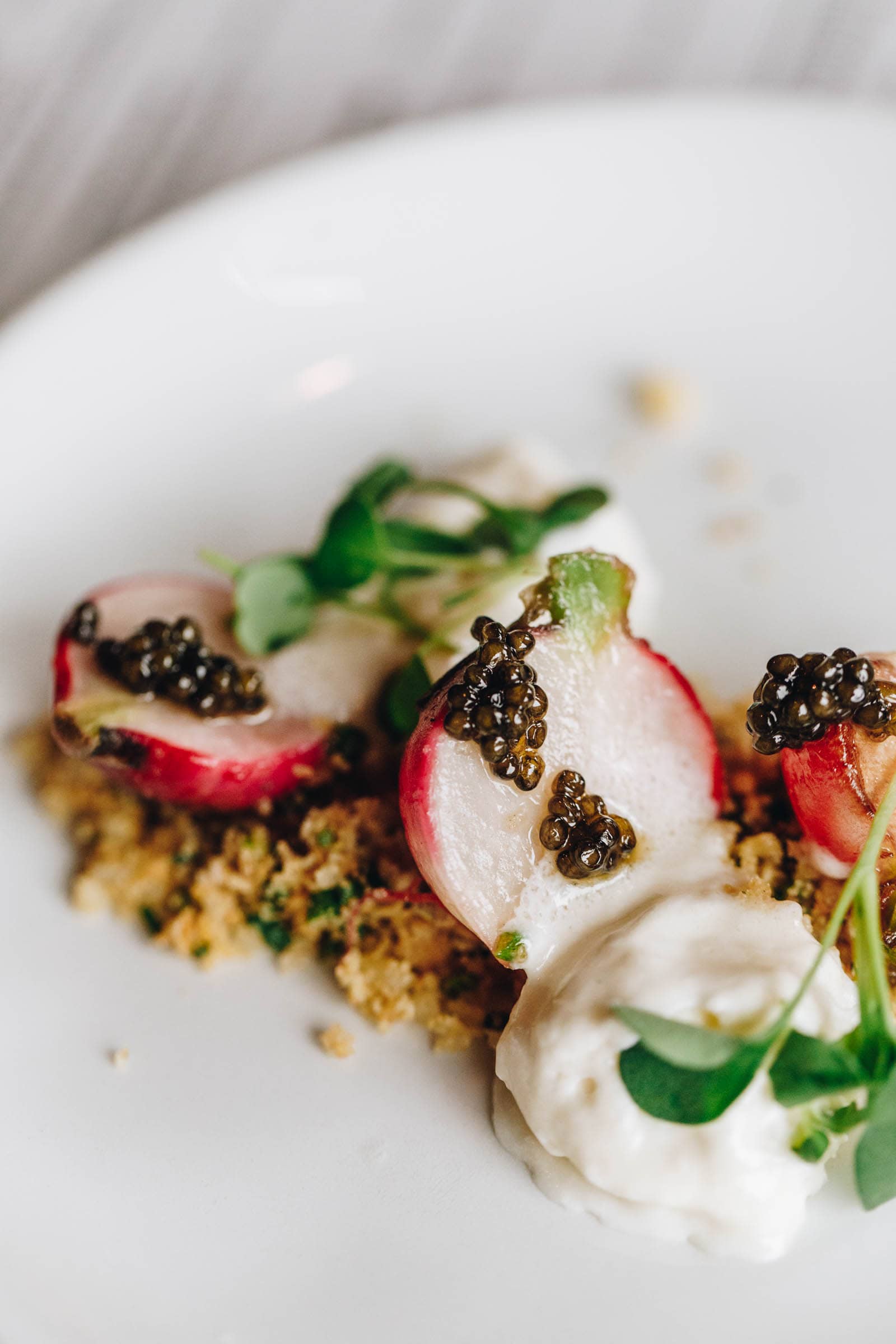 The opening night dinner was truly spectacular. Detroit Cultivated did a fantastic job with styling our event, and the Marrow team pulled off an impressive 4-course meal that had everyone drooling! Some highlights: aSteak Frites Tartar with Private Selection beef tenderloin, Private Selection fingerling frites, Tillamook Smoked Black Pepper White Cheddar gougers, and a soft quail egg, and a Shaved Apple Salad with Private Selection honey apple dressing, farm greens, Tillamook clover honey whole milk farm style yogurt, and granola