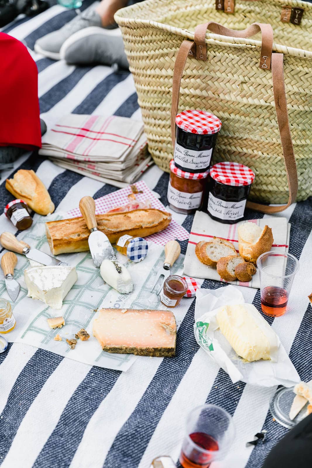 We finished our day with the most lovely picnic at Place des Vosges, one of my favorite parks in Paris. We laid out on a picnic blanket with fresh baguette, stinky cheese, and, of course, Bonne Maman preserves.