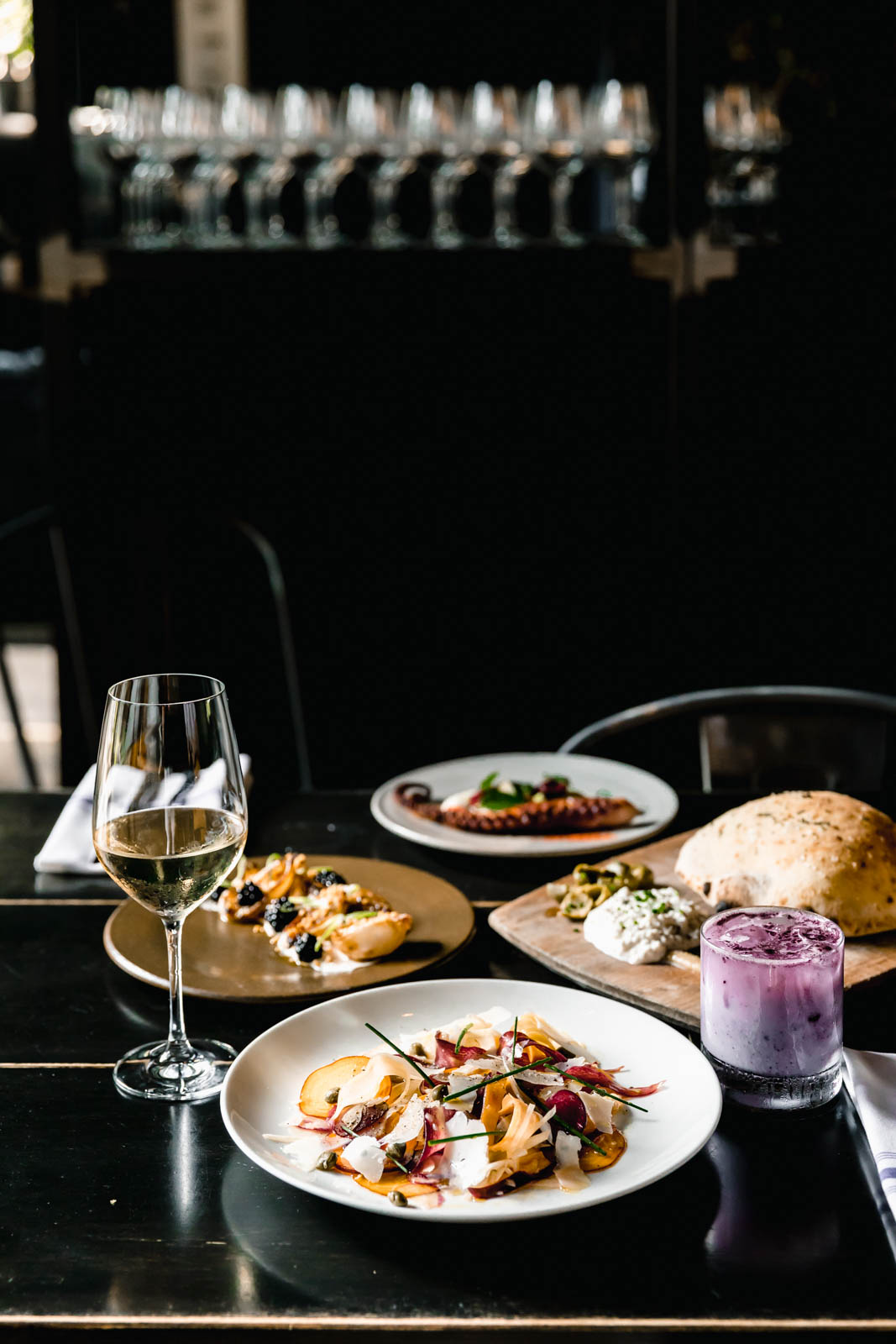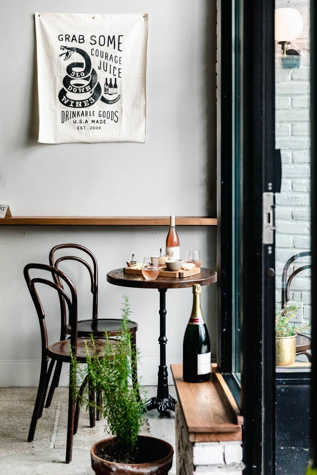 With oriental rugs and dim lighting, this intimate wine bar is worth a stop. The space is impeccably designed with homey touches, a great selection of cheese, charcuterie, and tin fish (hello, make-your-own cheeseboard!), and a huge variety of wines that you can either drink there or take to go!