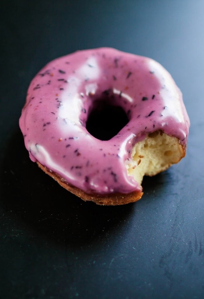So I follow some food blog people on Instagram, because who doesn’t. Something I love to do is look at what other bakers are making to get ideas for myself, and because I love seeing how other people are photographing their desserts. I started following Jonathan of the Candid Appetite a couple weeks ago, and then a few days ago he posted the most magnificent-looking donuts ever. I loved the recipe, loved the photograph, and decided right then and there I wanted to recreate them myself. This is his recipe to a T. Oh, and how did they taste? Amazing of course. I ate about 10 donut holes right out of the fryer. So I had to make these with an amazing glaze: Bourbon Blueberry Basil Donuts.