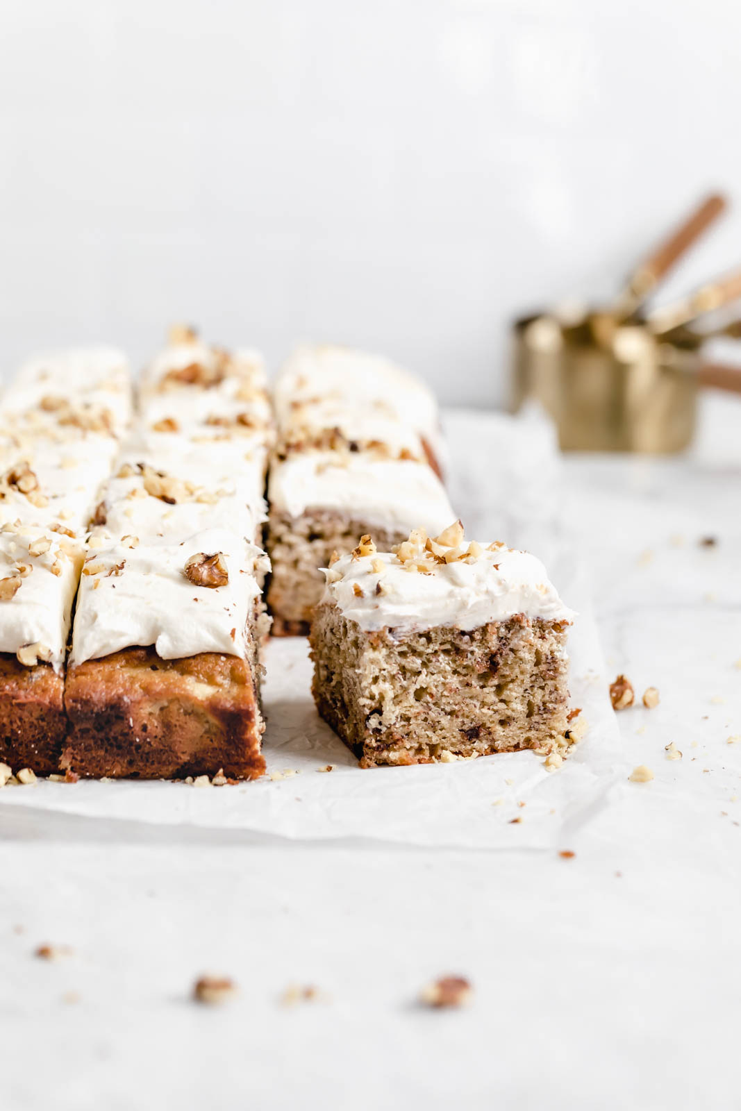 Let me warn you before you make this delicious sheet cake that everyone is going to go bananas, as in B-A-N-A-N-A-S, for this banana cake recipe. Sofi made this cake for a bridal shower and had multiple people request it as their wedding cake…seriously.