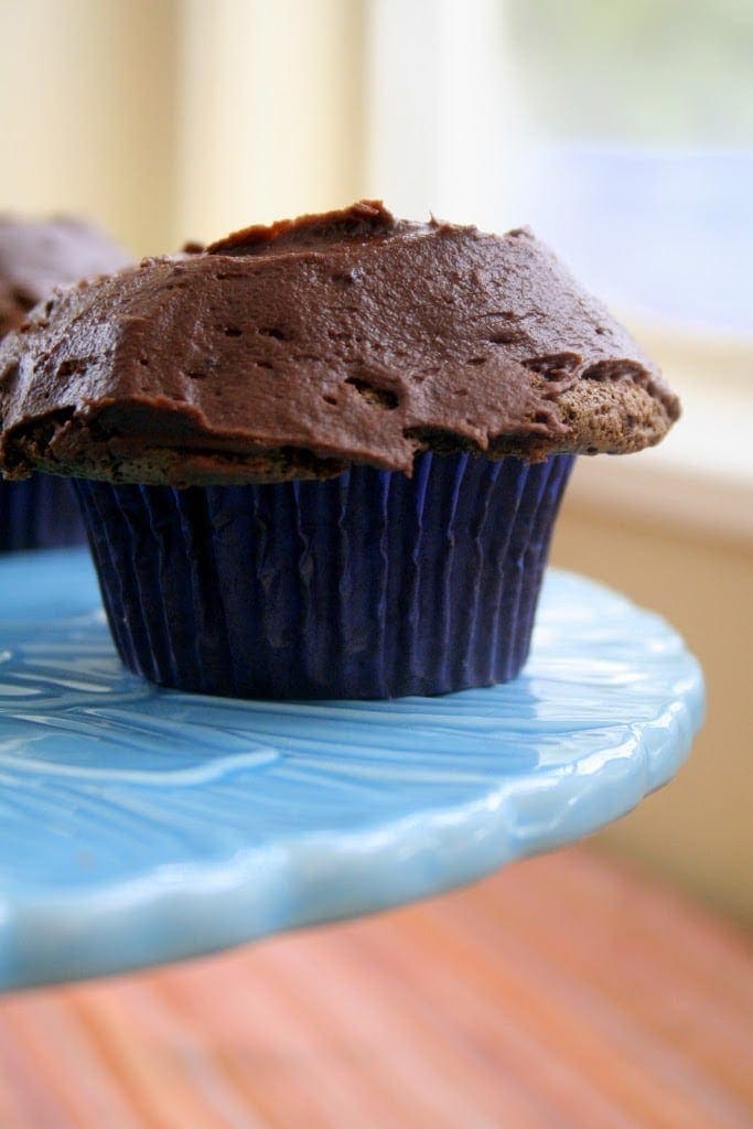 Katharine Canfield Cookie, waiting for my cupcakes to finish baking. Pure joy? Yuh-huh. Ok, so about the recipe: I was introduced to this recipe by a friend in New York when she made them for a Harvest Party. The idea was to make delicious food using all or mostly all local ingredients. The cupcakes used beets, butter and eggs from the Union Square Market, and the dry ingredients came from Whole Foods’ organic section. So not only was it healthy, it was also organic! I remember gawking over their unique flavor- it’s a cross between chocolate and zucchini flavors- so I tweaked the recipe and came up with this baby. And best of all, these cupcakes prove it is totally possible to make a delicious dessert while also being both sustainable and nutritious. The cupcakes themselves have virtually no fat aside from the fat from the two eggs and teensy bit a chocolate. This being said, I need a little butter-lovin’ in my life, so I opted for a full-fat frosting recipe 😉
