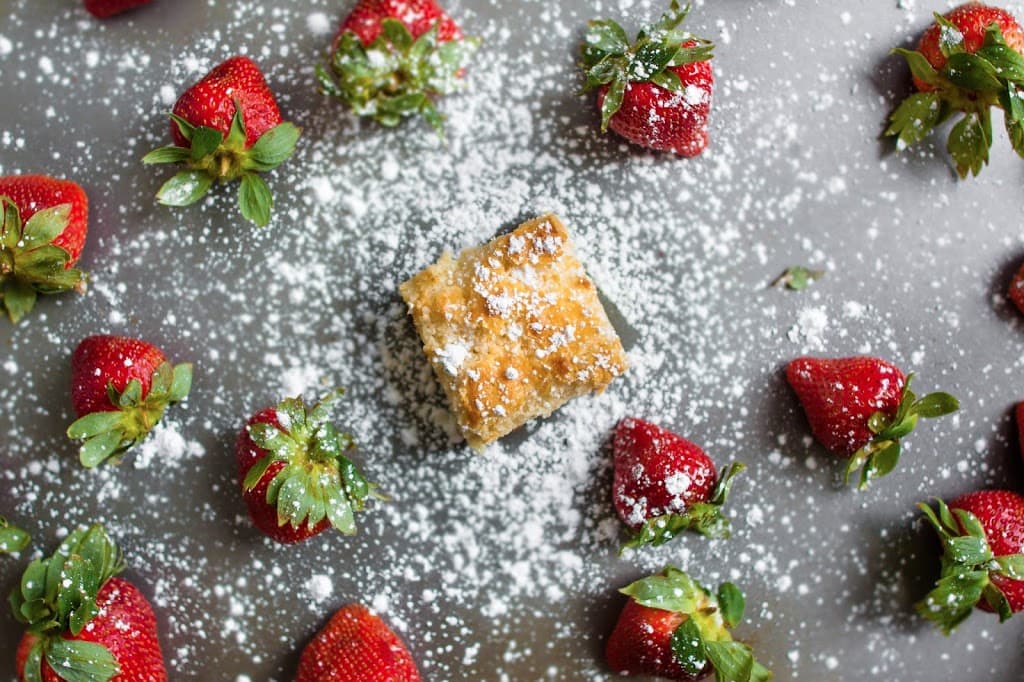 - Prepare an 8″x8″ pan with butter or oil. Pour batter into pan and bake for about 60 minutes until top is golden. Cool in the pan for 2 hours. Top with powdered sugar.