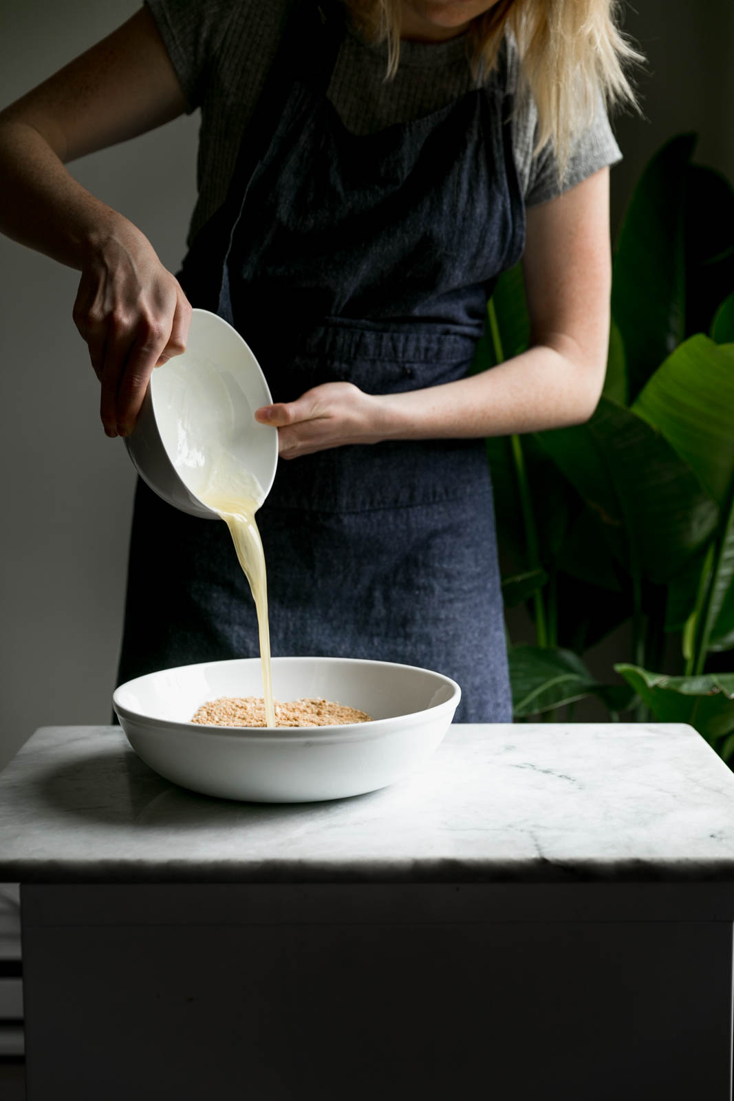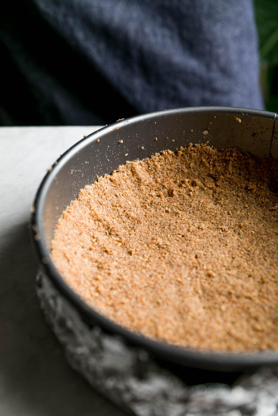 My secret to creating a crust that’s almost as good as the cheesecake itself? I add in ground almonds. They impart a subtle nuttiness, and add a great texture to the graham cracker crust so that it doesn’t feel like, well, just graham crackers and buttah.