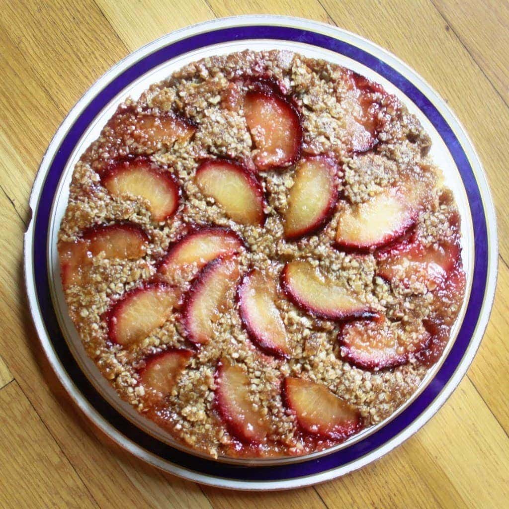 - Oatmeal plum upside down cake