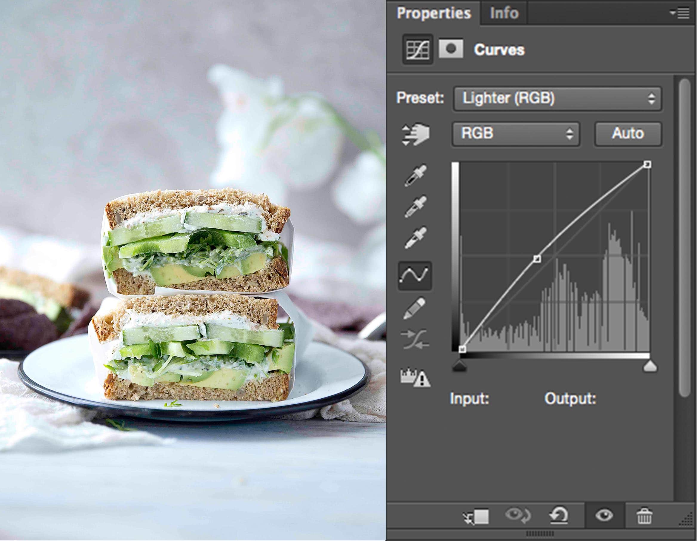 Next step is to lighten up our image. Click on the Curves widget, then in the dropdown menu, select “Lighter.”