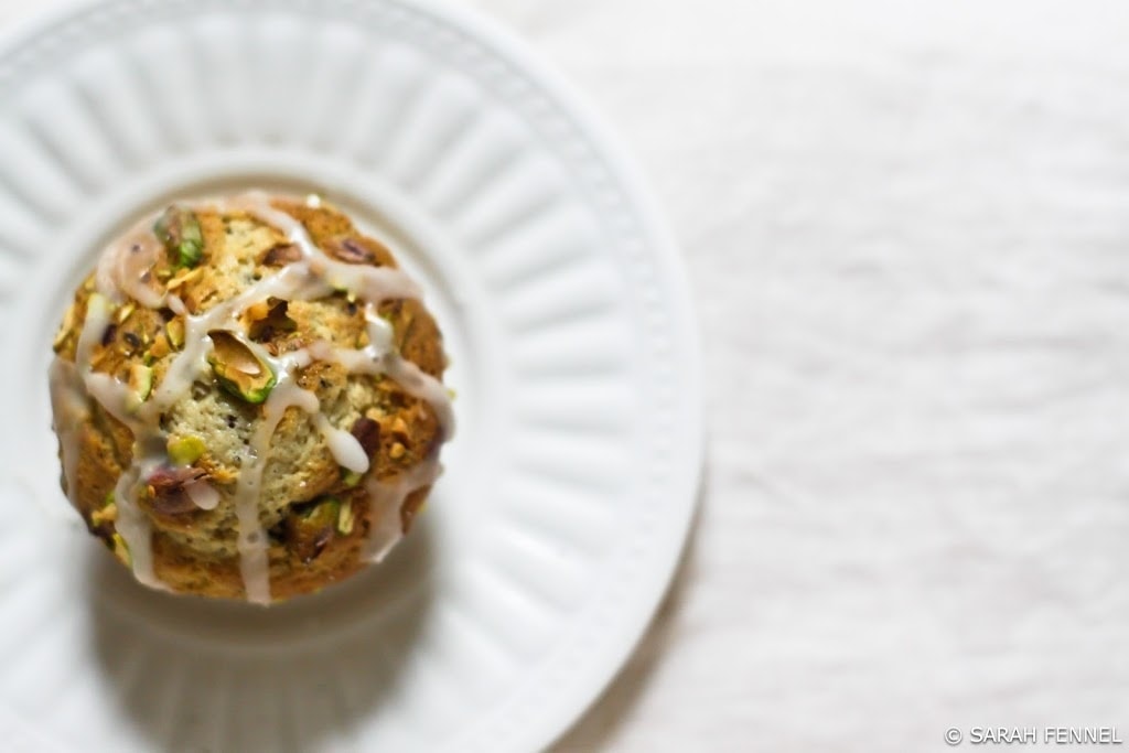 - Spoon the batter into greased or lined muffin cups. Sprinkle the chopped pistachios over top.