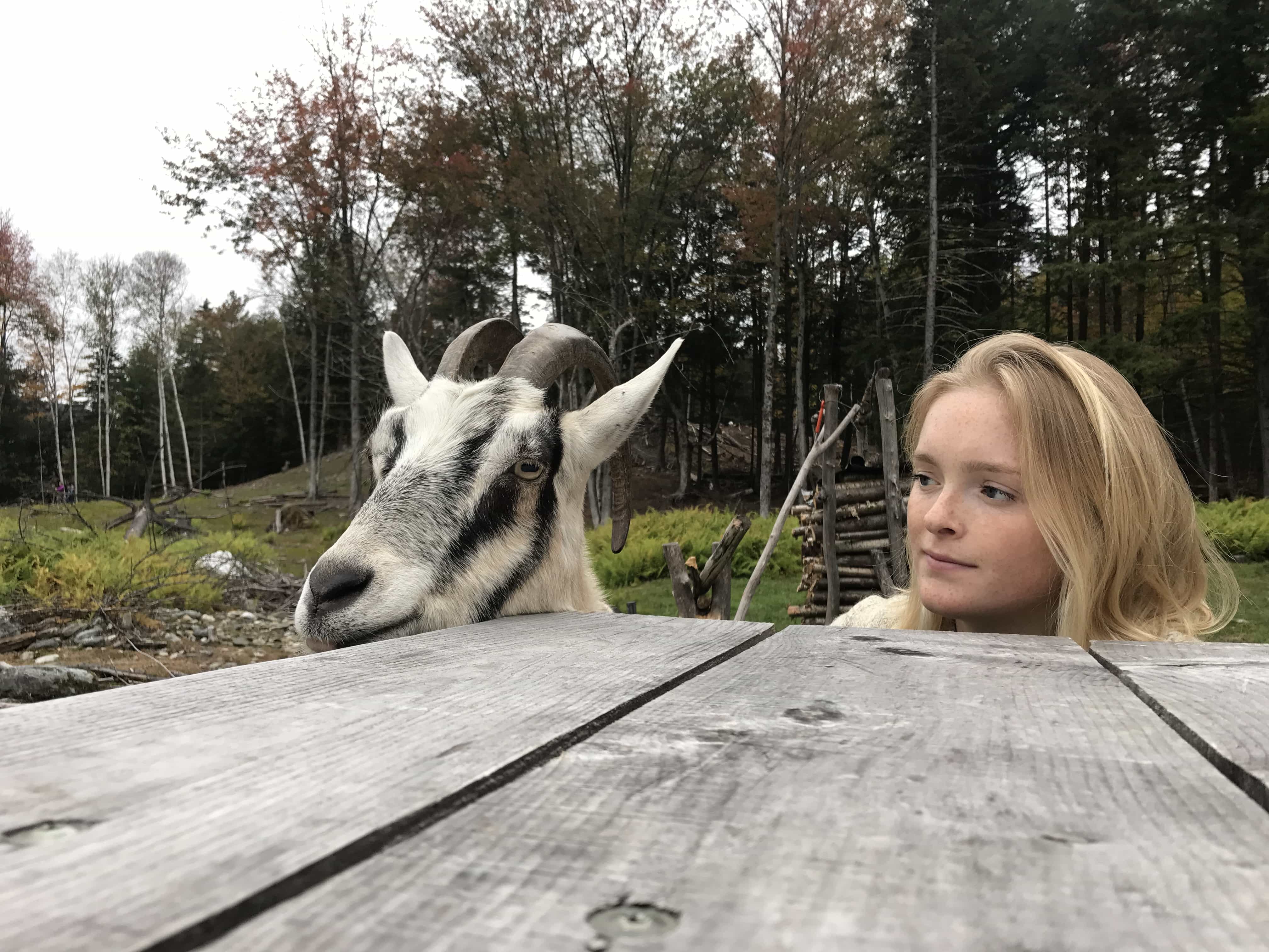 My sister Rebe and I went on a little adventure in Vermont a few weeks ago. We stayed on a goat farm with the happiest goats we’d ever met. They were so friendly, came right up to you, and begged for you to scratch them on the head. I briefly wrote about this in a post last week, and my mom emailed me saying “you can’t just say you stayed on a goat farm and not show pictures!” So… here are our goat friends: