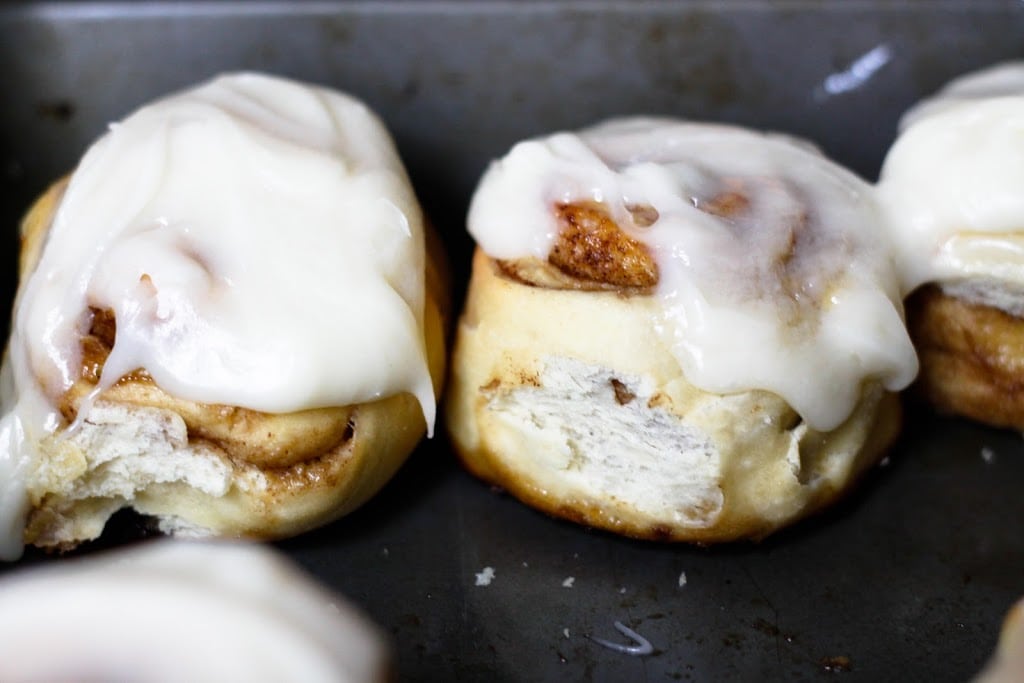 - Using an electric mixer, beat together all glaze ingredients. Once the buns are out of the oven, immediately frost the tops with the glaze. Then swoon and foodgasm.