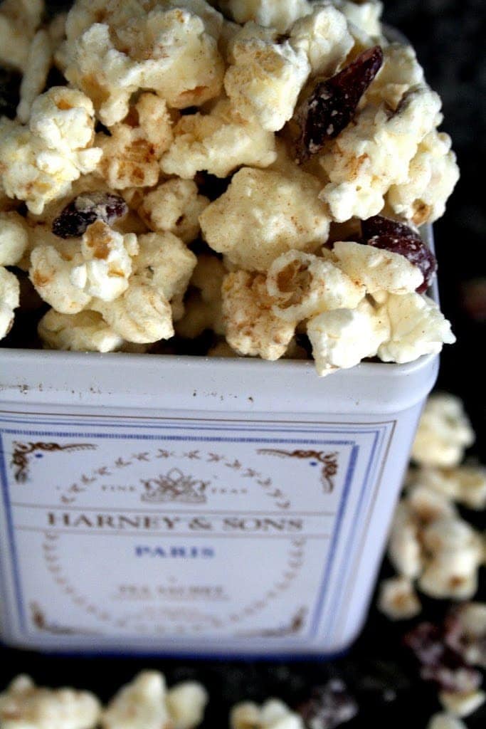 When I was a kid, whenever I went to the movies with my family, my sister would order a large popcorn and I, nothing. I was never a fan of popcorn on its own. But a couple years ago my aunt Daisy made this sweet popcorn snack for Thanksgiving second dessert (because there are numerous desserts on Thanksgiving, obviously). And every time since when I go to the movies and my sister orders popcorn, I always think about how there’s nothing I want more than that white chocolate popcorn. There’s something about sweet and salty together that makes your taste buds go “ooh-ee!” And the punch from the cinnamon is the perfect wintry addition to this dessert (/snack? dinner? hehe).